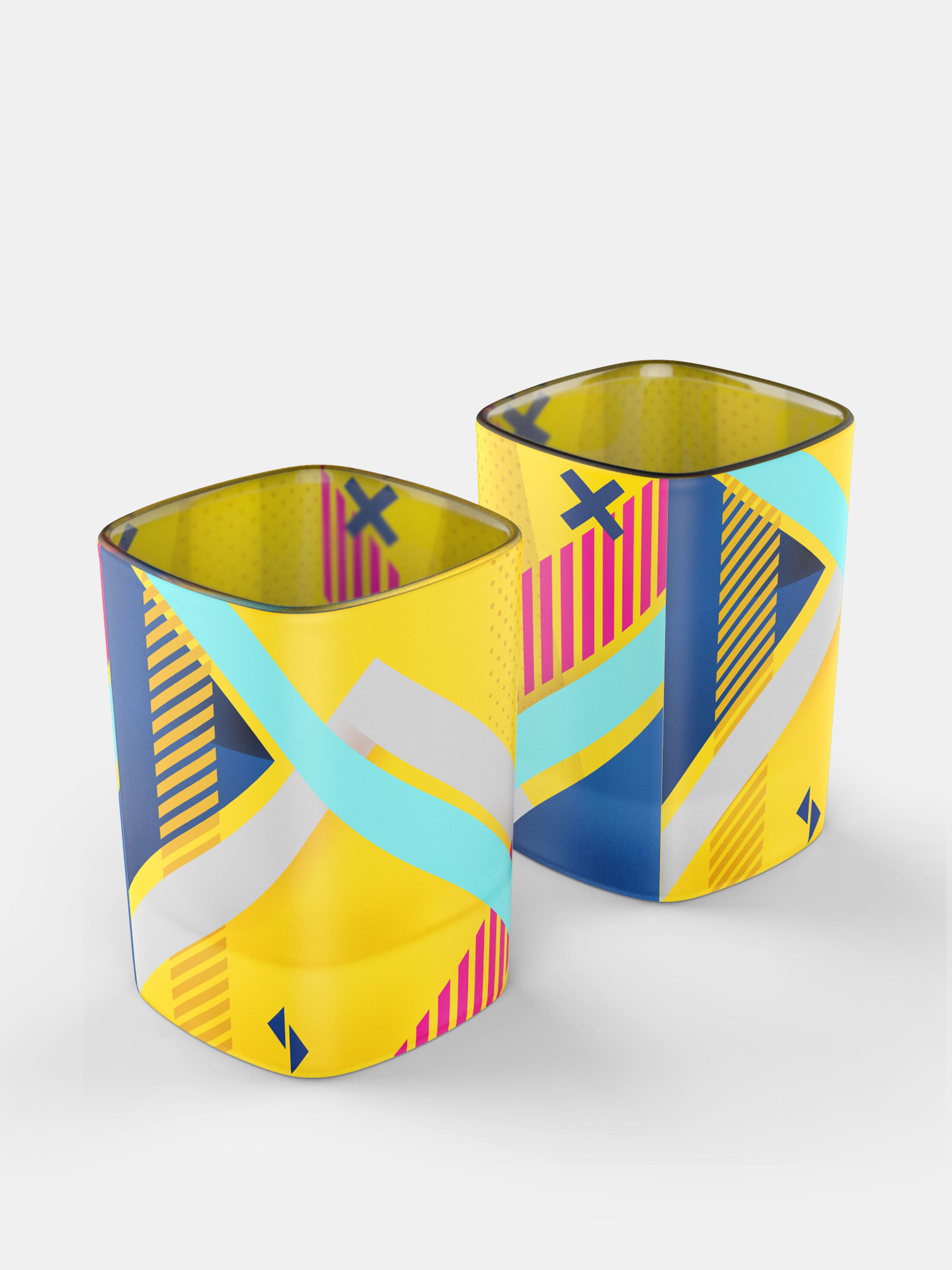 カスタムプリントウォッカグラスをデザインする際、各グラスには1つのデザインエリアがあります。 各々のグラスを同じ方法でデザインするか、または異なるデザインも可能です。 プリントはグラスを包み込み、角でくっきりとした継ぎ目で結合されます。 昇華プリントは真っ白なインクを印刷しないため、デザインの空白は印刷されないことにご注意ください。 印刷されない領域は、透明なグラスのクールな外観が残ります。