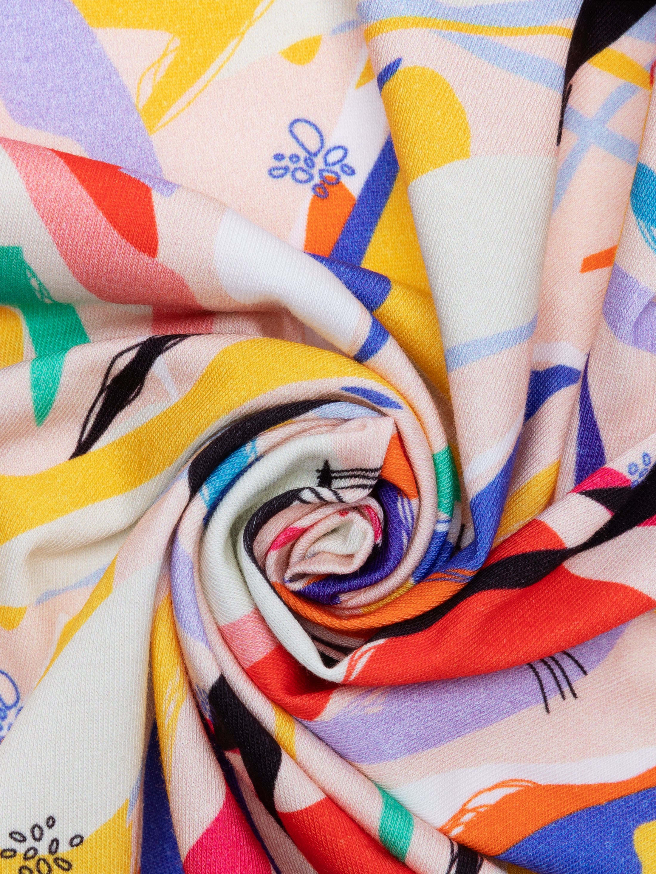 生地に含まれるポリウレタンにより、オンデマンド印刷のコットンジャージー生地が時間が経っても形を保つのを助けます。この生地は着用したり、伸ばしたり、洗ったりしても、型崩れしにくくお手入れしやすい素材です。