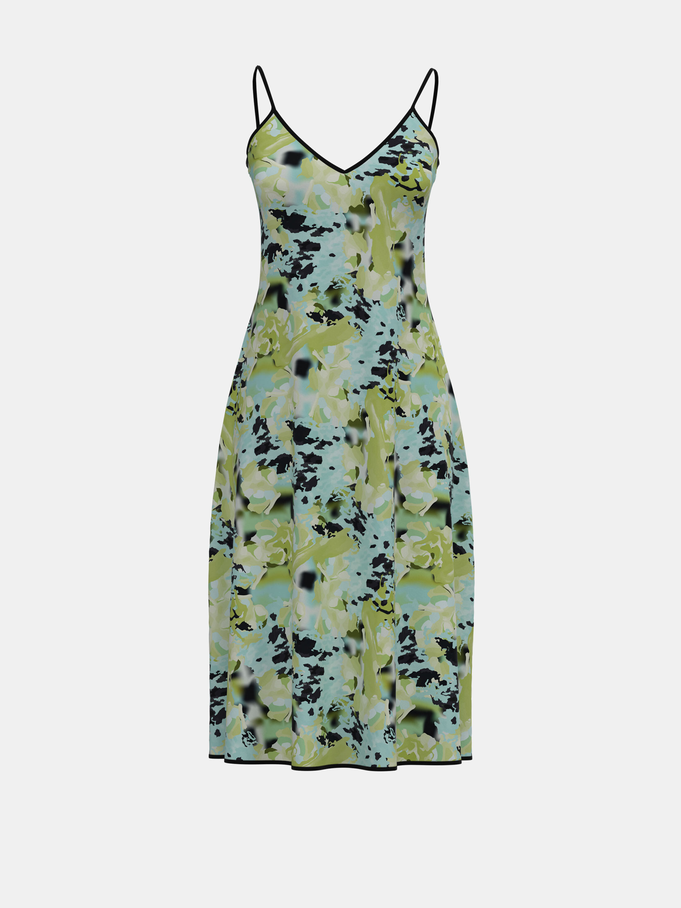 ミディは前面と背面にパネルがあるので、同じデザインをプリントすることも、全く違うデザインを2つプリントすることも可能です。シンプルで流れるようなフォルムのミディドレスには、スタイリッシュなリピートパターンがよく合います。着丈も長いので、1枚のプリントでも十分エレガントに仕上がります。