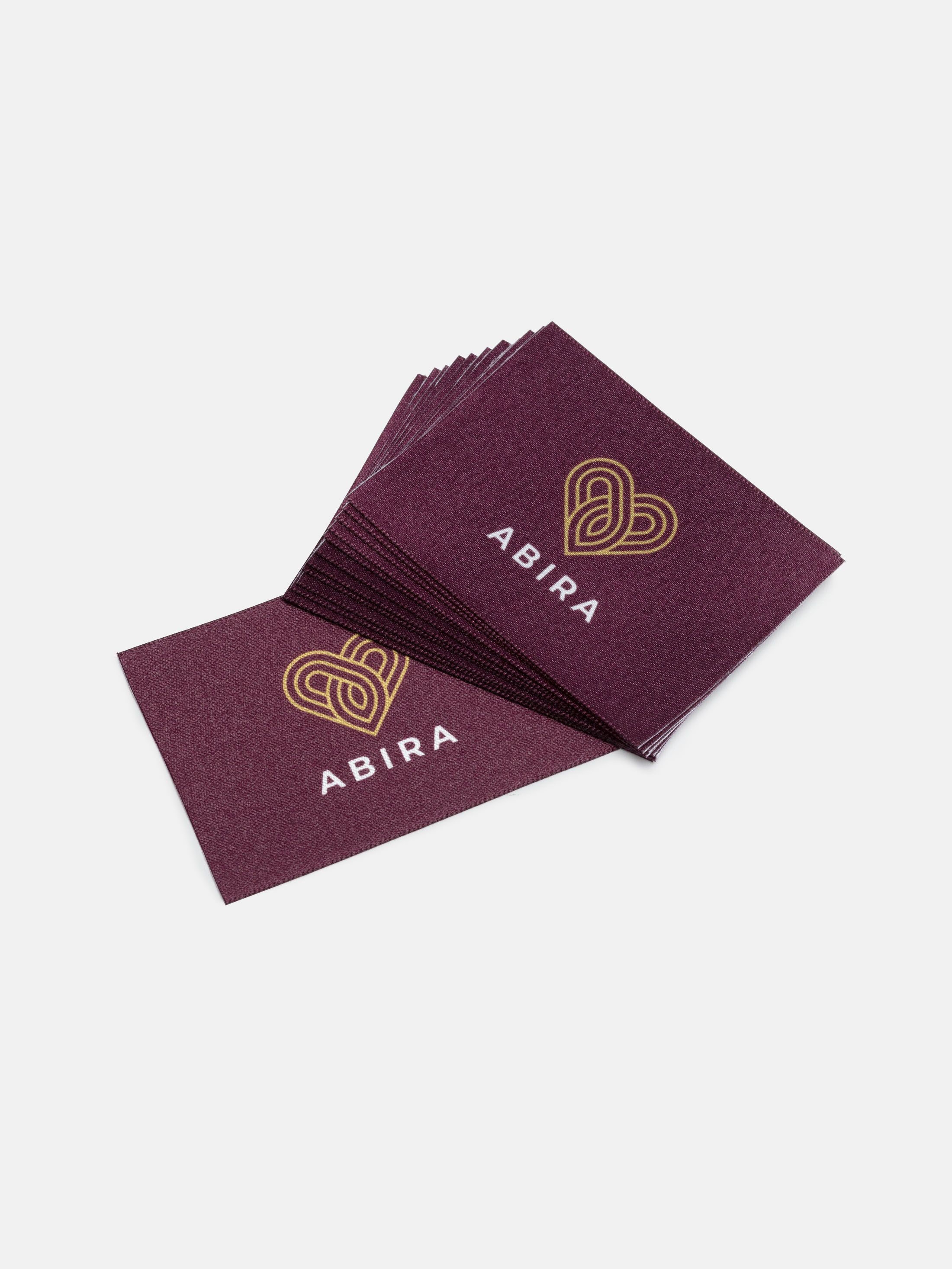 ブランド名やロゴ、カラーを使ってファブリックラベルを作ります。印刷には昇華方式を採用し、フルカラーでプロ仕様の仕上がりを実現。ロゴは色あせないので、オリジナル商品であることが一目瞭然です。また、タグの端は、時間が経ってもほつれないように仕上げられ、ヒートシールされます。洗練されたブランディングが実現します。