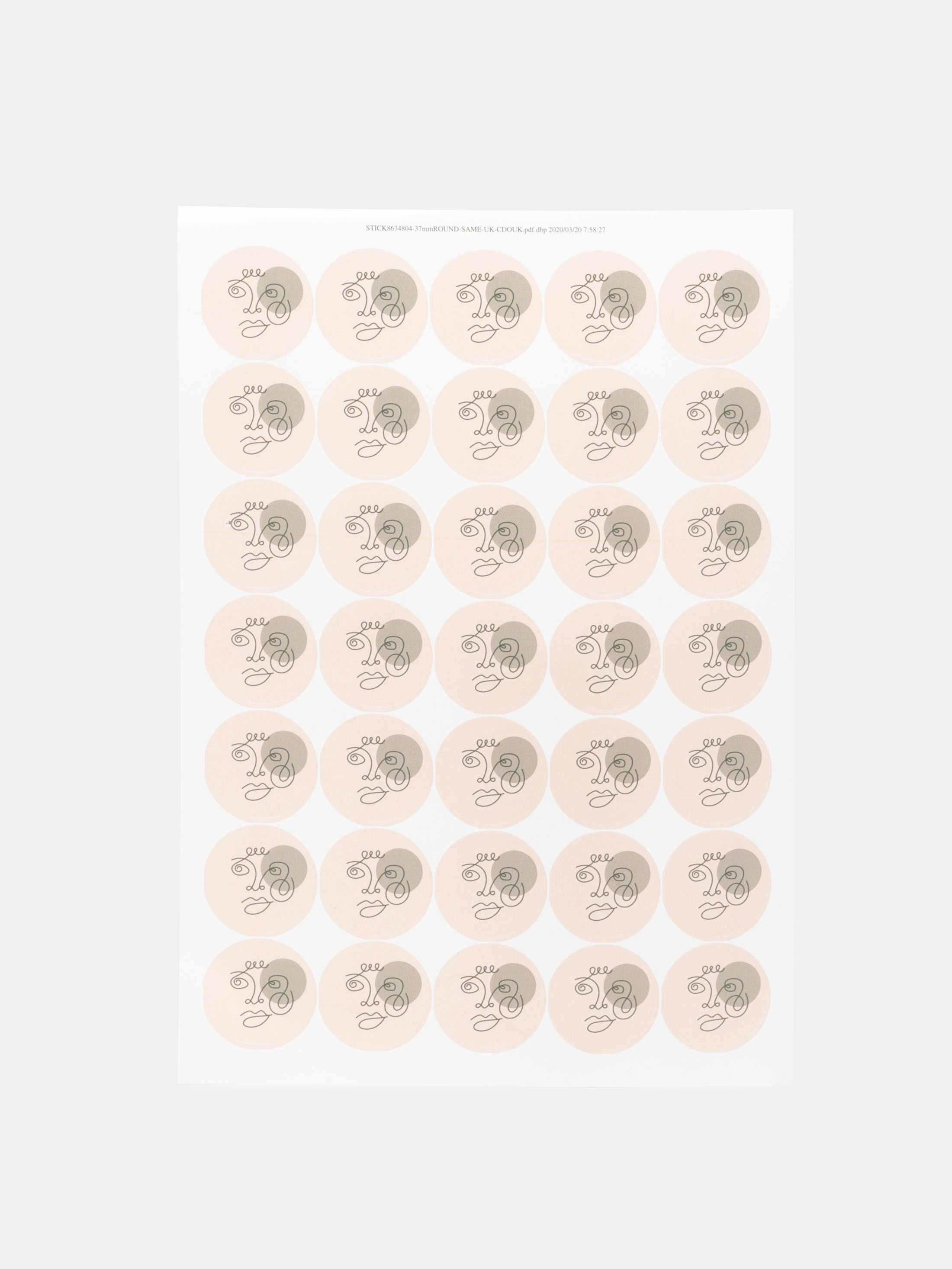 シール印刷はサイズに応じて1シート15枚または35枚入りです。円形と正方形2種類のデザインご用意しております。1枚ずつ異なるデザインが可能です。